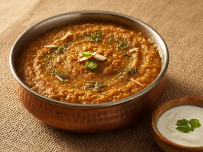 Hareesa is haleem's ancient ancestor — whole wheat berries and mutton slow-cooked together for 4-6 hours until they completely dissolve into a thick, silky, porridge-like dish that is simultaneously humble and extraordinary. Finished with a sizzling ghee tarka poured dramatically over the top, this is the dish that sustained armies, fed pilgrims, and defines winter mornings in KP.