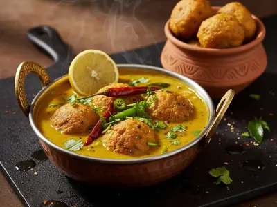 Tangy yoghurt curry made with besan (gram flour) that's so comforting it feels like a hug in a bowl. Crispy besan fritters are floated in the sour gravy and finished with a sizzling red chilli tarka that makes a dramatic entrance. A Punjabi staple that every household makes slightly differently — and everyone claims their version is the best.